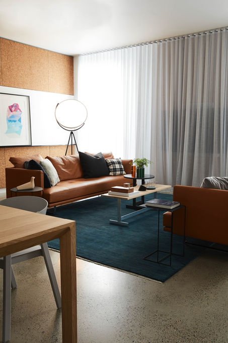 The space was curated as a hybrid lounge with high functionality. Acoustic treatments were core to the design. Tactile Portuguese cork wall panelling adds texture and warmth, while being a practical acoustic material.